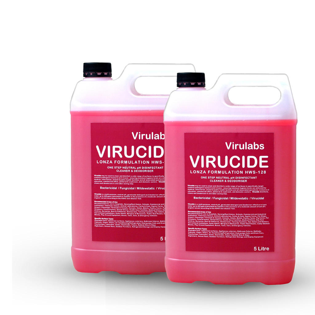 Virulabs Virucide Concentrate is an MPI approved one-step cleaner and disinfectant bactericidal / Fungicidal / Mildewstatic / Virucidal suitable for a wide range of surfaces specifically targeting common pathogenic bacteria and viruses to ensure maximum hygiene levels are achieved for veterinarian and animal environments. Virucide disinfects, cleans and deodorises in one labour saving step. Additional product information below.